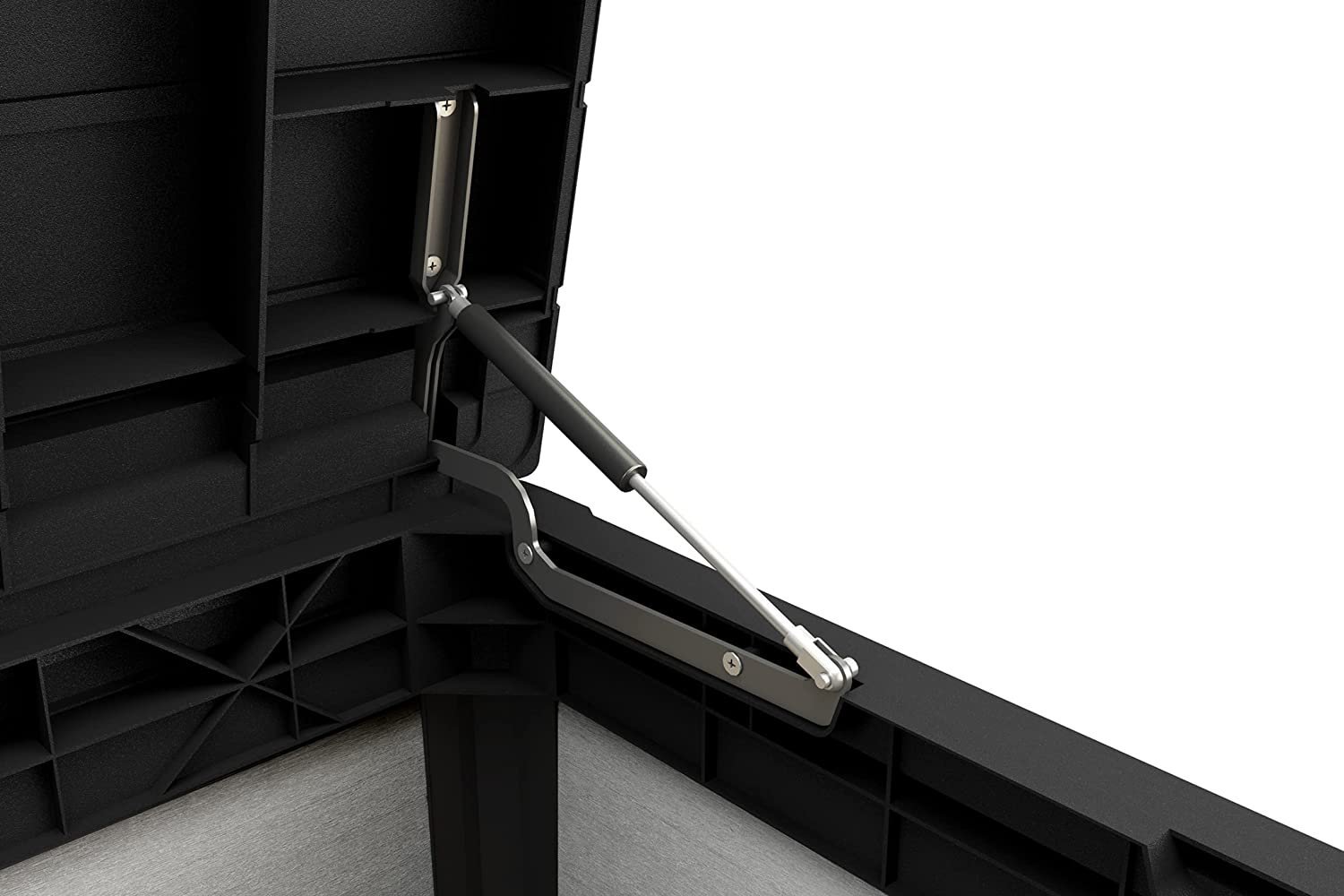 A perfect choice for your outdoor space, the Denali storage box combines an ultra-strong build with an elegant design. This sturdy multi purpose outdoor storage box can comfortably seat two adults and is made of innovative DUOTECH™ material which is weather-resistant, UV protected, and features a rustic wood like texture and a stylish dual tone. Featuring a 380 L capacity, the Denali will hold cushions or other accessories, helping to maintain your, patio, or garden clutter-free. The piston system opens the box smoothly, while the lockable lid allows you to keep the box firmly closed when necessary.